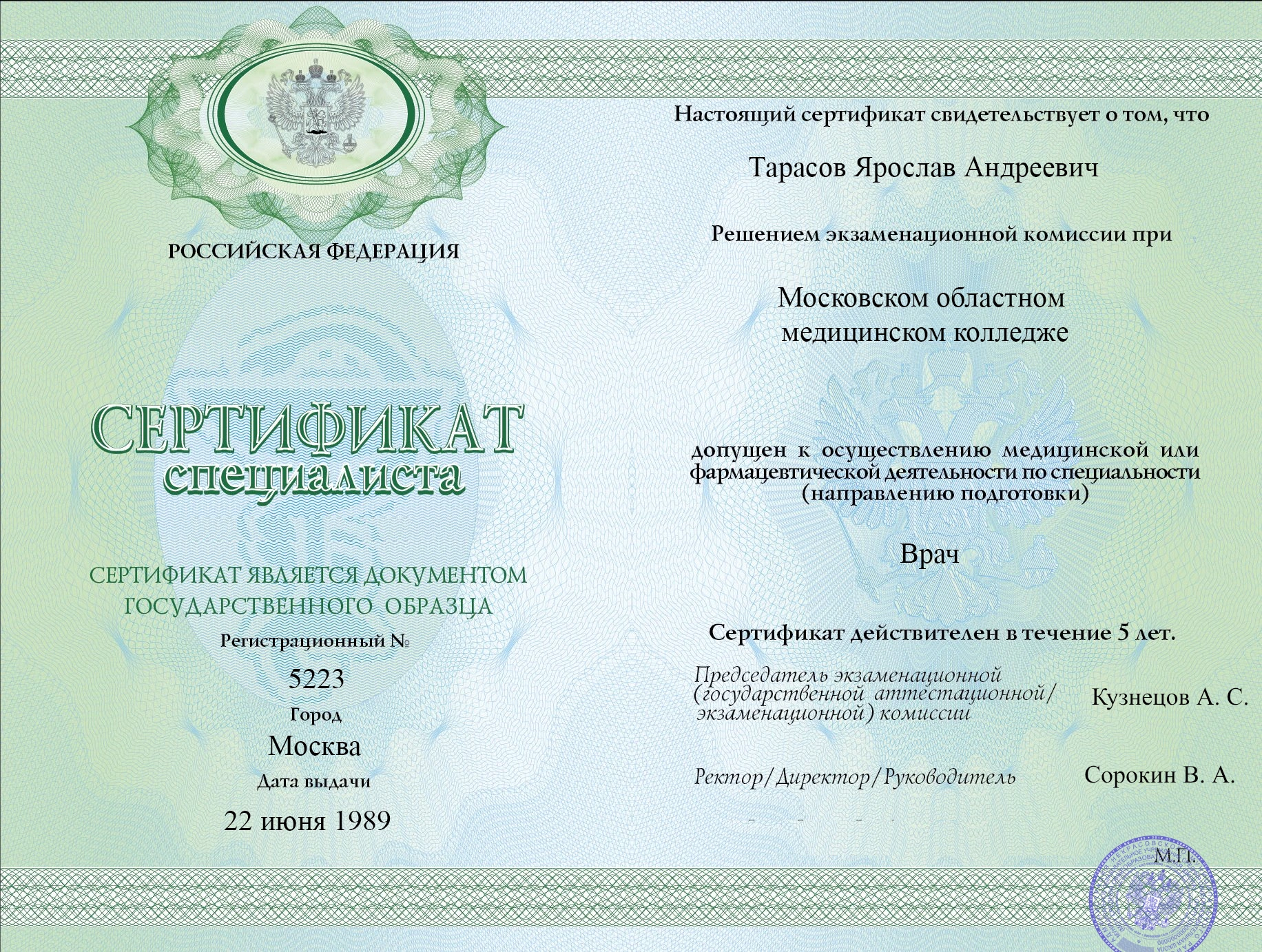 Отзыв о враче "Тарасов Ярослав Андреевич"